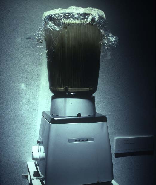 SN: Well you know, sinceWWII a disolution of borderlines between genres set in. There has been an incredible mixture and cross current among the arts. The lesson to be learned from that is that we can bring out the positive nature of this randomness and apply it to an international scale. The breakdown of genres and the destruction of high and low cultures is another concern of the show. Rather than thinking of the artists as working in seperate fields, it is attempted to discover their similarities and to expand on that.
